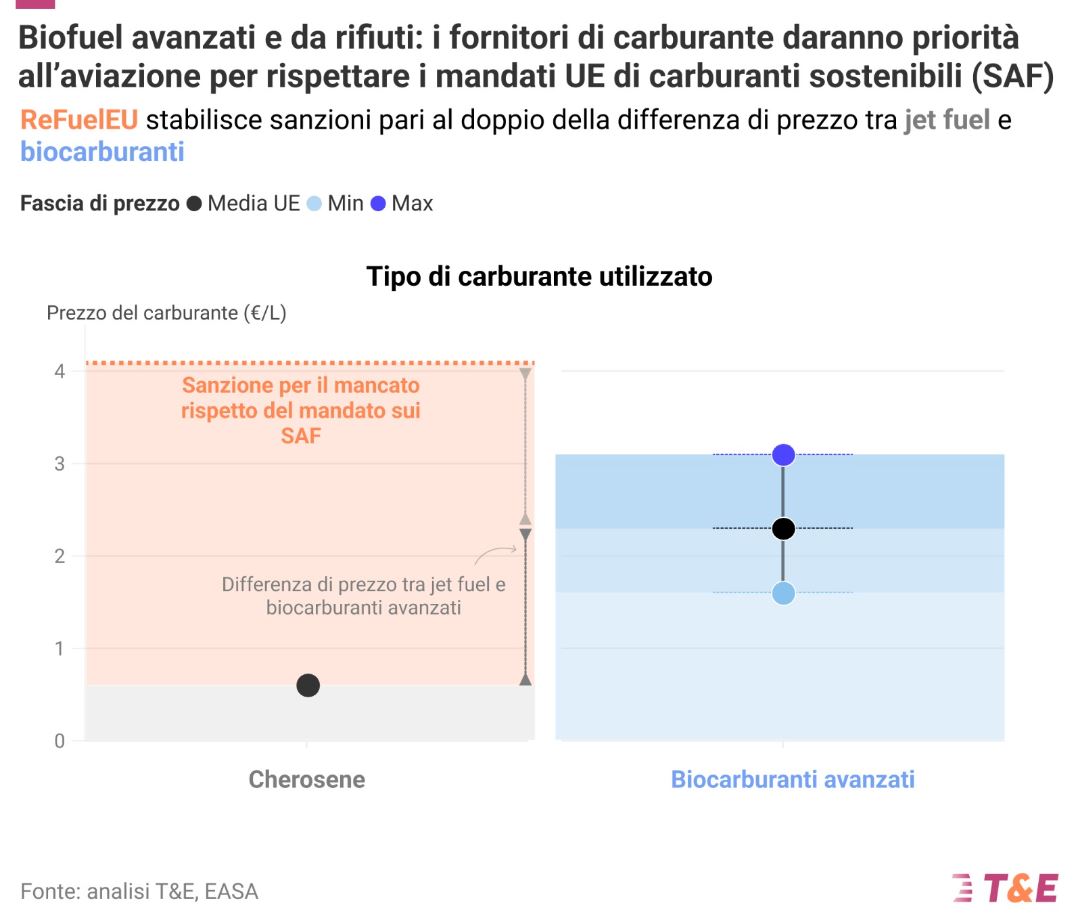 Il costo di rifornimento di biocarburanti rischia di aumentare ulteriormente in futuro a causa della competizione con il settore dell’aviazione, per le limitate quantità disponibili di biocarburanti avanzati sostenibili. I fornitori di carburante aereo hanno infatti un forte incentivo ad acquistarli, poiché il regolamento europeo sui carburanti sostenibili per l’aviazione (ReFuelEU) prevede sanzioni pari al doppio della differenza di prezzo tra carburante fossile e biocarburanti in caso di mancato raggiungimento degli obblighi di miscelazione.