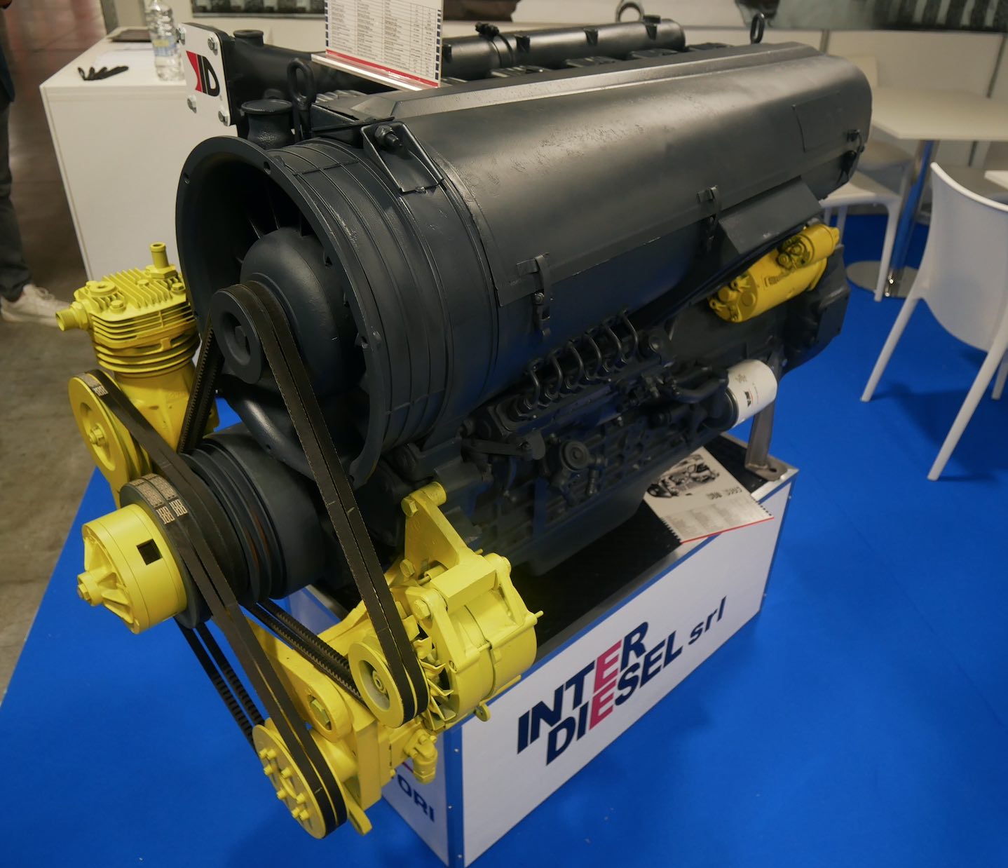 Ci permettiamo una brevissima digressione. Allo stand di Interdiesel, che tuttora trova nel ricondizionamento dei motori usati uno dei volti che hanno scritto pagine di storia dei motori da lavoro: il SUN 6105 di VM. Un sei cilindri con la fantasmatica canna da litro (AxC 105×115 mm) addirittura raffreddato ad aria. Un motore instancabile che nel continente africano cavalca ancora savane di impieghi che ne esaltano lo spirito coriaceo. Ovviamente aspirato, capace di 86 chilowatt (pari a 117 cavalli) a 2.300 giri, l’equivalente di un onesto 3 litri Stage V.