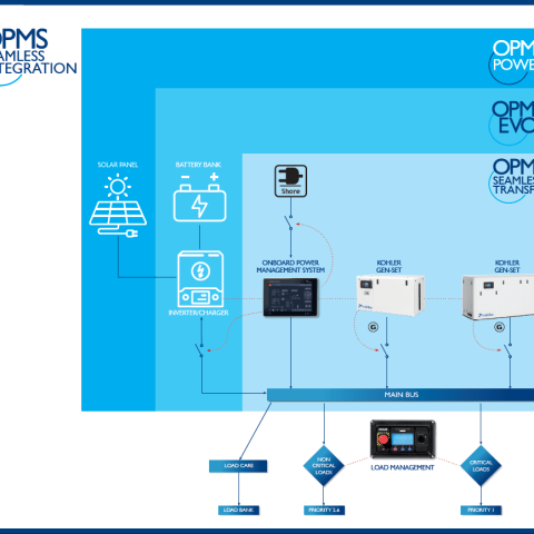 Il Metstrade diventa infatti il palcoscenico ideale per il lancio a livello internazionale dell’OPMS Seamless Integration, un sistema pensato per la gestione ottimale dell’energia di bordo (Onboard Power Management System). Il sistema, ideato, sviluppato e realizzato da SAIM, e conforme alle normative internazionali ISO, IEC e RINA, gestisce la distribuzione dell’energia ed il passaggio fra le varie fonti (anche esterne) tramite un quadro di controllo che limita anche i picchi di consumo per ottimizzare il dispendio energetico ed evitare sprechi.