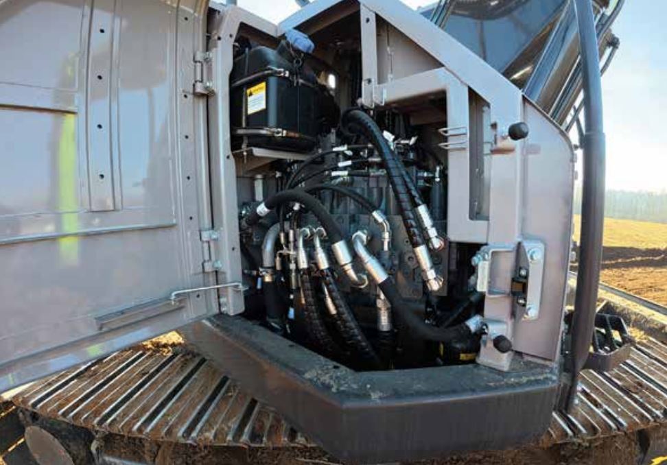Un mezzo da 5.440 chili di peso operativo con motorizzazione Kubota da 3,8 litri, Stage V, con una potenza di 81,7 chilowatt (111 cavalli) ed un impianto idraulico di serie da 160 l/min. Un valore che attualmente la colloca ai vertici del mercato. Il V3800-TIE5H di Kubota è antagonista naturale dell’F3.8 di Cummins. Stessa canna (AxC 100×120 mm), a corsa più lunga rispetto all’americano, dispone di catalizzatore, filtro antiparticolato e sistema di urea catalitica, eroga 96.4 chilowatt (129,3 cavalli) a 2.400 e 446.4 Nm a 1.800 giri.